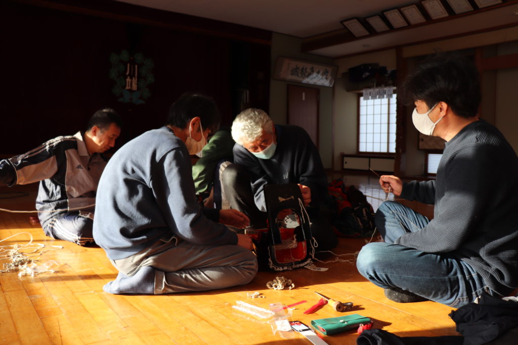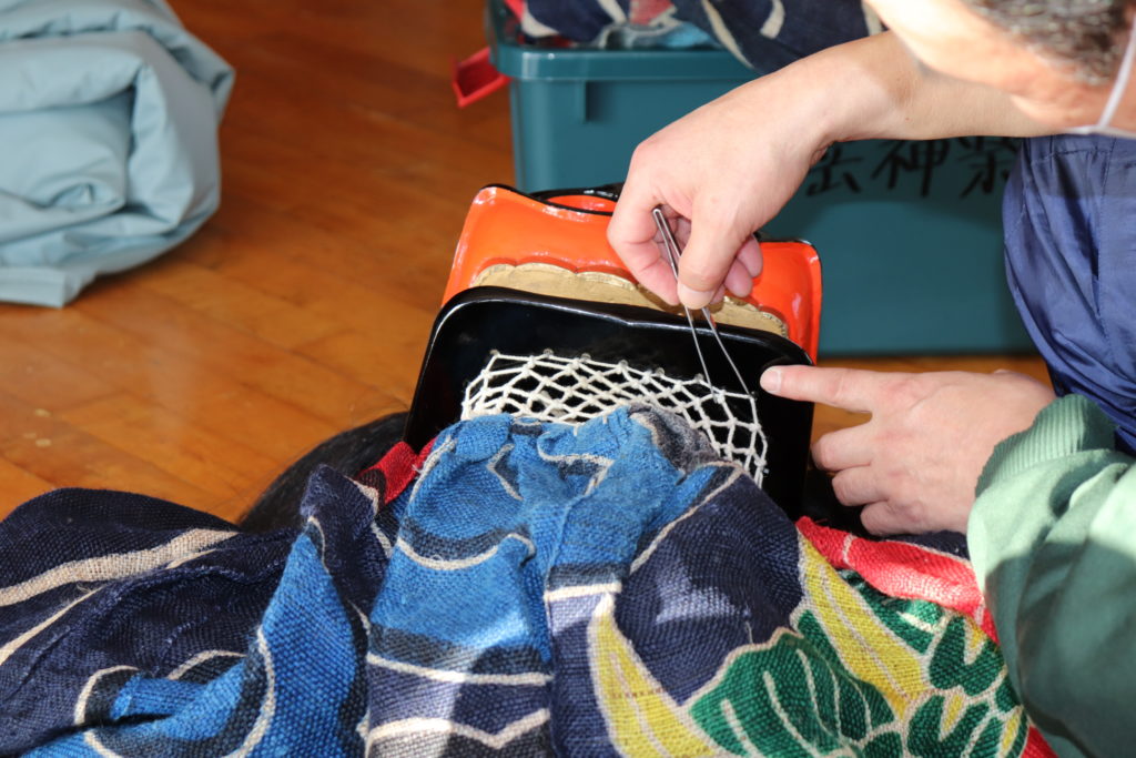川端岳神楽の指導員の皆さんで、権現様の修理を行いました。