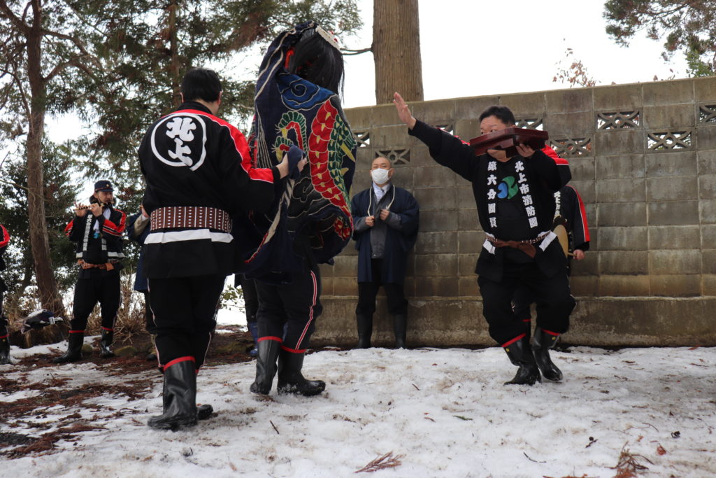 HOME > お知らせ > お知らせ 2022川端地区火防祭 投稿日:2022年2月27日 2022/2/27(日)川端地区の火防祭が開催されました。コロナ禍ですから規模を縮小しての開催です。小雨の中、自治会のみなさん・消防団のみなさんが祭りを盛り上げてくれました。 -お知らせ