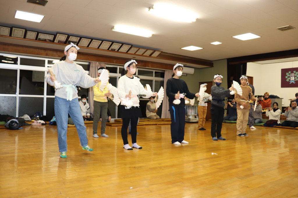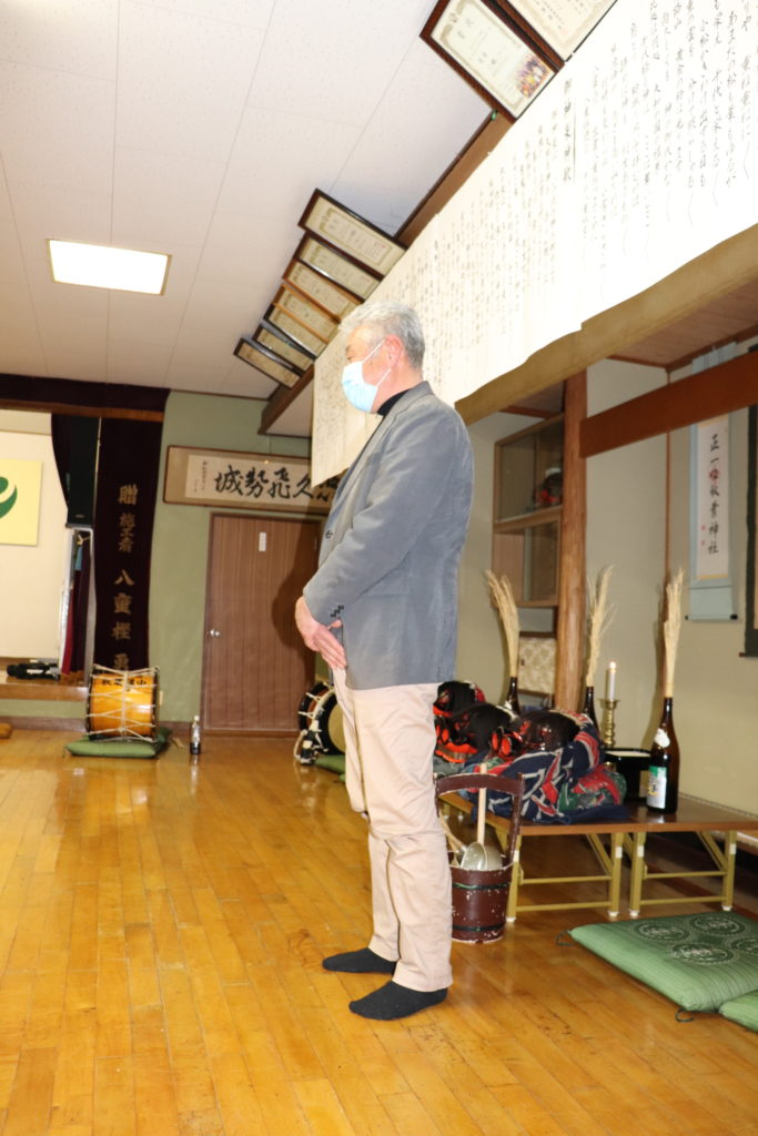 HOME > お知らせ > お知らせ 2023火防祭の練習が始まりました 投稿日:2023年2月19日 3年ぶりに下舞を含めた火防祭が開催されます。2月18日 この日は新調された神歌の披露セレモニーがあり、続いて下舞の練習と権現舞の練習が行われました。下舞は20名の皆さんになります。この日から6日間の練習が行われ、24日は笠揃え、25日~26日が本番となります。 -お知らせ